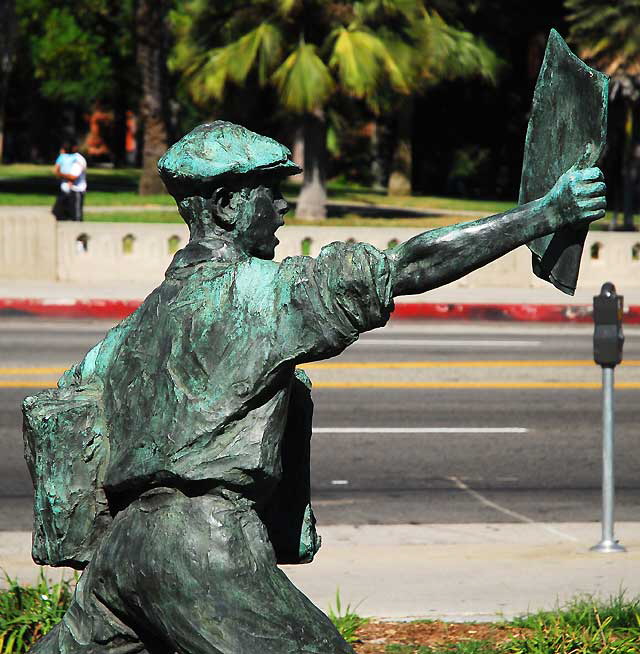 Harrison Gray Otis (1837-1917) is a long way from where he was born, Medina County, Ohio – but the newsboy works for him, as Otis was once the publisher of the Los Angeles Times. He's green bonze now, but he was a colorful fellow – part of the Republican National Convention that nominated Abraham Lincoln, and he fought in the Union army during the Civil War in William McKinley's regiment, the 23rd Ohio Infantry. After the war he kicked around in the newspaper business, ending up out here, where he eventually bought a half-interest in the Times, and immediately named himself president and editor-in-chief. In 1898, when the Spanish-American War broke out, he asked McKinley, who had somehow or other become president, to name him Assistant Secretary of War. That didn't work, so Otis volunteered for the Army got a command – the 1st Brigade, 2nd Division, VIII Corps, during the Philippine-American War. Drat.