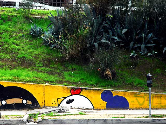 Mural on retaining wall, Sunset Boulevard near Coronado Street, in Silverlake –