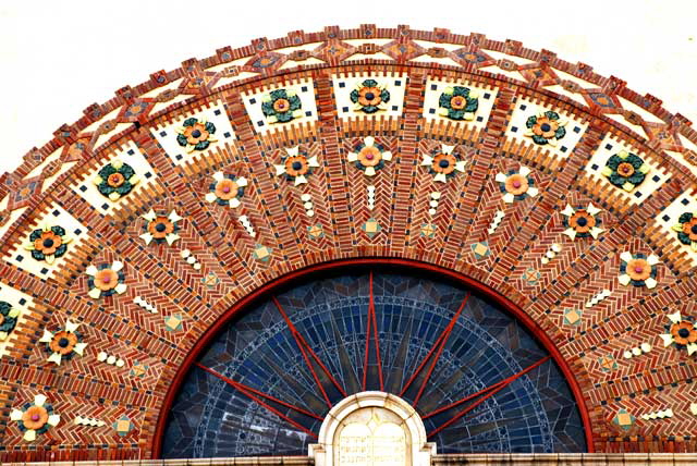 Ah, this is the Korean Philadelphia Presbyterian Church, designed by S. Tilden Norton as Temple Sinai East for the first services of the Sinai Congregation in 1925 – and it's LA Historic-Cultural Monument Number 91, at the corner of Forth and New Hampshire. Obviously, of the Sinai Congregation, the first Conservative congregation west of Chicago (they broke away from the Orthodox Beth Israel congregation in 1906) has moved on – over to Westwood at Wilshire and Beverly Glen, back in 1960. But you don't let a good S. Tilden Norton Mediterranean-style masterpiece go to waste.