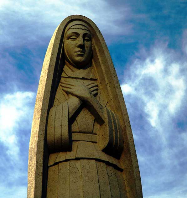 Wilshire Boulevard runs from downtown Los Angeles west to where it ends at the Pacific, in Santa Monica. It stops abruptly at the bluffs. The Pacific is right there, far below. And Saint Monica is right there too, with her back to the Pacific.
