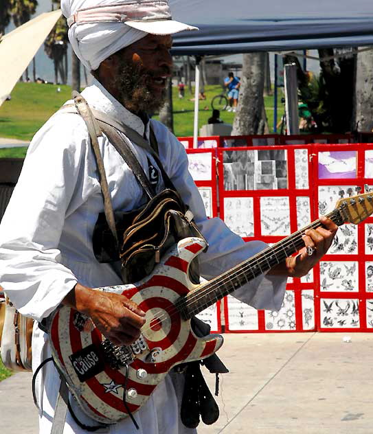 The man in a turban on roller-skates who scoots around playing his guitar right in your face in Venice Beach