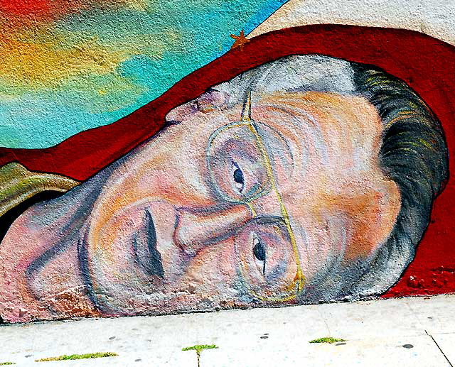 The odd thing is that it keeps changing. This is the 1991 mural by Annie Sperling, A Mural Dedicated to Peace ("Silver Lake Mi Amor") on the southwest corner of Sunset and Hyperion, east of Hollywood in the area called Sunset Junction – and elements seem to come and go. Maybe peace is elusive.