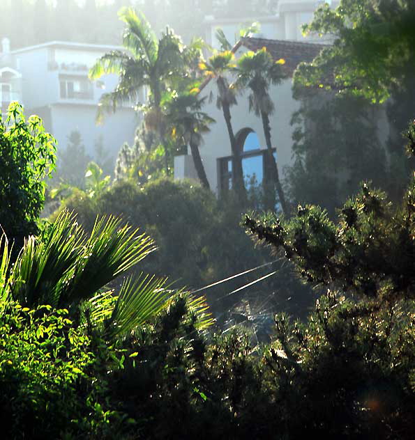 Late Friday afternoon here above Sunset Boulevard, sipping scotch on the balcony, watching the late light on the Hollywood Hills – hadn't noticed the spider web before –