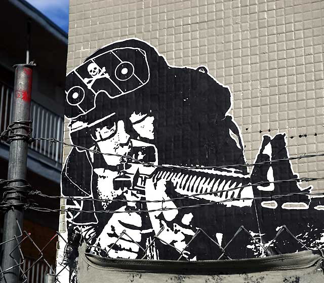 Soldier graphic at the abandoned Sunset-Pacific Motel, Sunset Boulevard at Bates Avenue, east of Hollywood, Wednesday, October 27, 2010