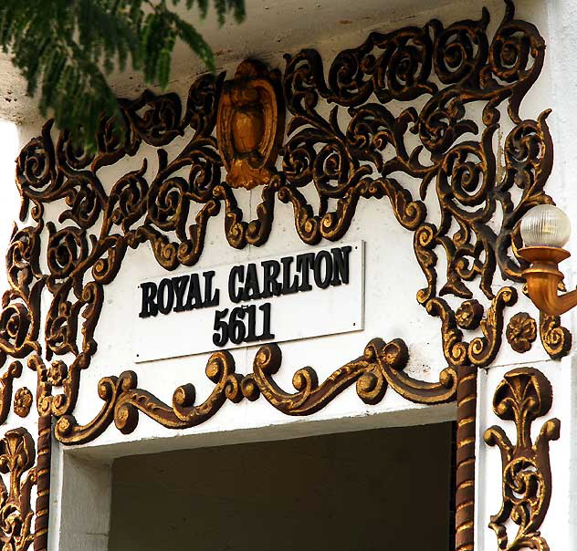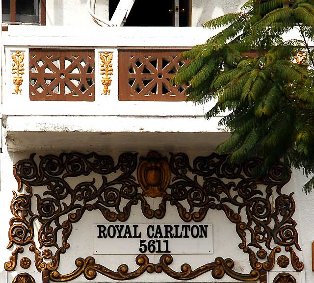 Think about 1930. February 18 – while studying photographs taken the month before, Clyde Tombaugh confirms the existence of Pluto – March 3 – John Dillinger escapes prison using a wooden gun - August 6 – Judge Joseph Force Crater steps into a taxi in New York and disappears forever – August 9 – Betty Boop premiers in the animated film Dizzy Dishes. It was a strange year. And from 1930 this is the Royal Carlton, at 5611 Carlton Way in East Hollywood at Saint Andrews Place. The area is a scruffy few blocks east of Hollywood, hidden between Sunset and Hollywood Boulevard – lots of tumbledown houses, an old elementary school behind giant chain-link fences, with a lot of gang activity – the usual young thugs in baggy jeans, fully armed. And in the middle of it all there's this 1930 Art Deco palace. It's a bit surreal, and you see it in movies now and then – location managers love the place. Of course there are plans to tear it down and replace it with a mixed-use project with retail and condos. But those plans are on hold – as in 1930 the construction financing fell through. The banks aren't lending any money – hard times. So here it stands.
