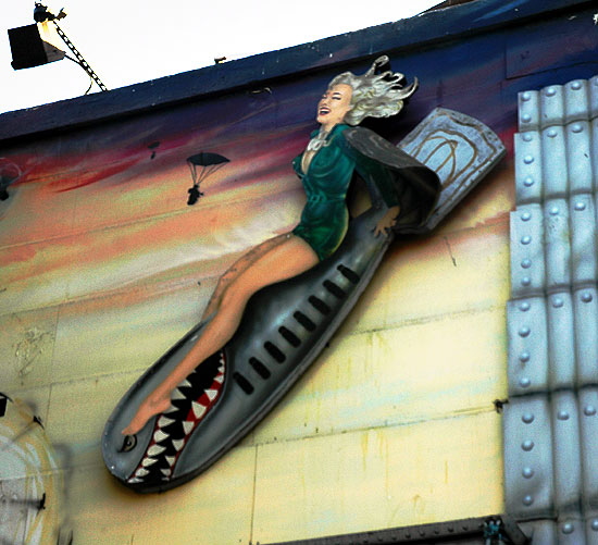 The façade above the military surplus store on Hollywood Boulevard - make of it what you will. Think "blond bombshell" or something.