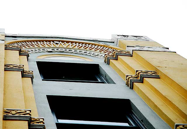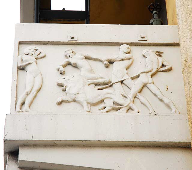 The Hollywood-Western Building, constructed in 1928 from a design by architect S. Charles Lee, on the southwest corner of Hollywood Boulevard and Western Avenue.  A four-story Art Deco structure that once housed the famed Central Casting offices - embellished with cast ornamentation (of course), including some odd nude figures, intended as a monument to the historic, cultural and economic significance of the movies.  On January 6, 1988, it was declared Los Angeles Historic Cultural Monument 336.