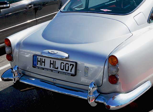 Okay, this is Hollywood and one should expect such things, but on a quiet Saturday morning there was James Bond's car, the steel gray 1963 Aston Martin DB5, parked in the lot on the south side of Sunset Plaza the heart of the Sunset Strip. You remember this car from Goldfinger (1964) the car used in the film was the original prototype, with another standard car used for stunts. This one on Sunset Boulevard even had the 007 European plates. Was Bond around somewhere?