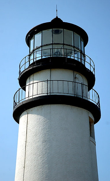 … A Naval radio station was located at Highland Light in 1904. The station assumed great importance during World War I and was guarded by a detachment of Marines. An even larger Fresnel lens, floating on a bed of mercury, was installed in 1901. After an electric light was put inside this lens in 1932, the light became the coast's most powerful. The 4,000,000 candlepower light could be seen for 45 miles, and reportedly as far as 75 miles in clear weather. The giant lens was removed in the early 1950s, replaced by modern aerobeacons.