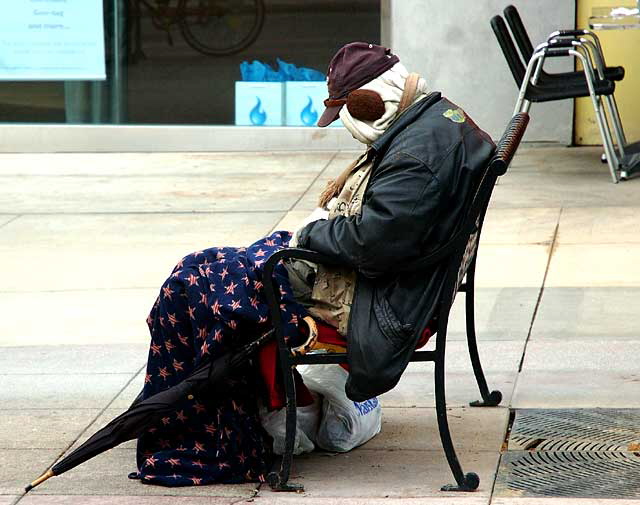 Homeless man sitting, Third Street Promenade, Santa Monica
