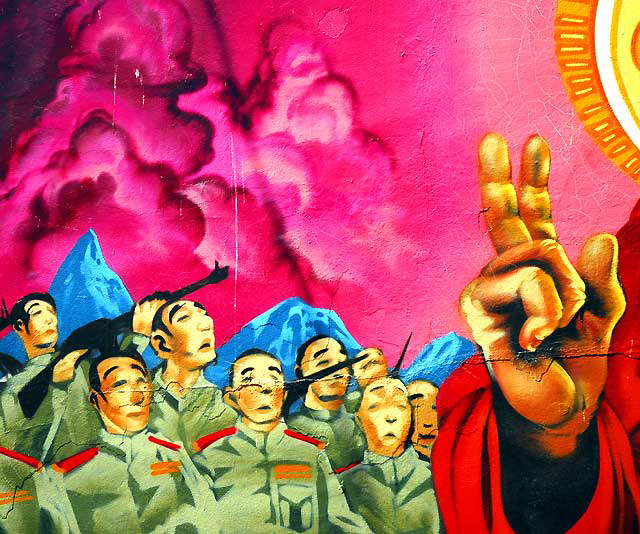As the Beijing Olympics are in full swing, it seemed time to visit the "Peace in Tibet" mural, in the alley off Spaulding, just south of Melrose Avenue –