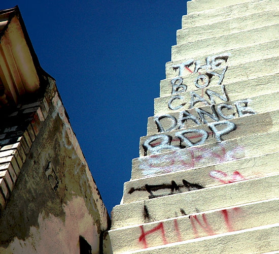 "The Boy Can Dance" graffiti above Hollywood Boulevard