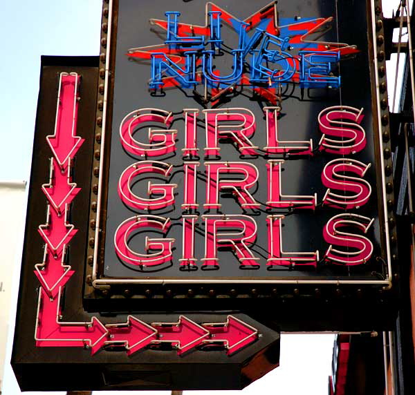 Strip Club - "Live Nude: Girls, Girls, Girls" neon sign - Sunset at Formosa, Hollywood