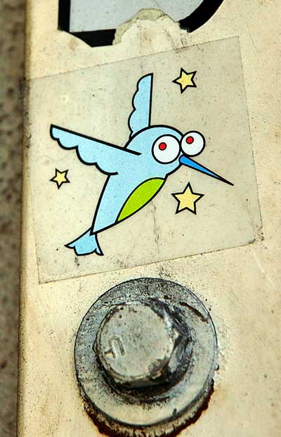 Hummingbird sticker, with bolt, at the door of Amoeba Music, Sunset Boulevard, Hollywood